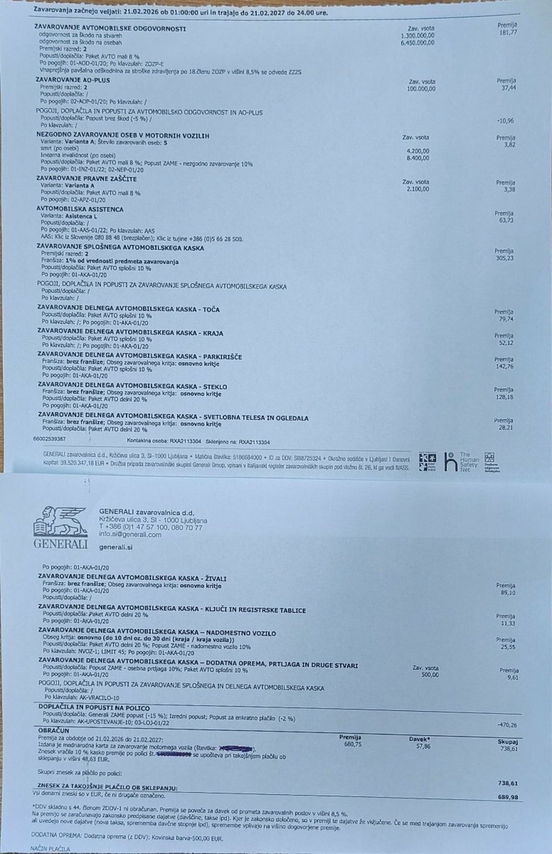 OK, hvala. Morda pa je 680€ samo za kasko, torej ne za celotno zavarovalno polico?