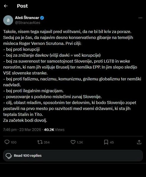 Tole je začelo krožit po Goriški. Nisem še preveril, ali je verodostojno ali je kak "deep-fake", ampak zadeva zna biti zanimiva. Nekaj točk mi je precej blizu: boj proti LGTB in woke norostim, boj proti ilegalnim migracijam, boj proti korupciji, boj za znižanje davkov (višji davki = več korupcije), ...
