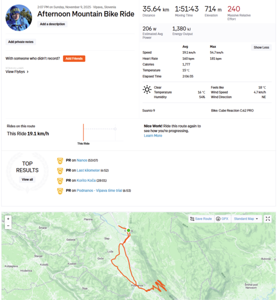 Na Nanosu je mraz,..posebi če greš v kratkih kot jaz 😅 No spust je bil mal neprijeten, za gor me je potilo.