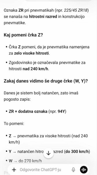 XL, hitrost Y (300) in nima ZR. Pa je zelo športna guma: XL lahko imam tudi na nešportnih gumah. Sem kar nekaj googla obrnil in nisem našel definicije o trši bočnici. Mogoče se motim.