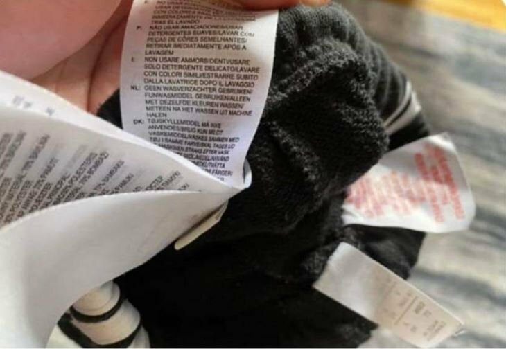 Saj bi bilo smešno, če ne bi bilo resnično... Včasih je bil gor listek, na katerem je pisala velikost in kako se opere. Pa zdaj? Ko da bi gor dali vsaj Sonetni venec, če ne kar celo zbirko Prešernovih poezij...