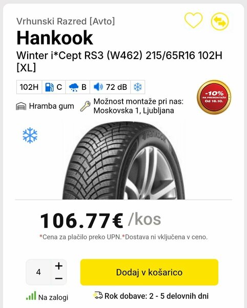 GumeNa Dom Shop poglej so letos precej ugodni glede na druge pa v Lj jih dvigneš brez stroškov. Malo primerjaj, ker je odvisno od znamke!