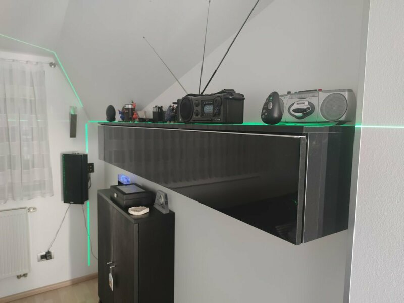To sem tudi jaz takoj pomislil🙄...mogoče sam naredim kaj "za na pas...mogoče iz INOX-žice al kaj...k ima tisti kovinski "vogaj",in je lahko kam natakniti,da "visi" na pasu🧐 Tukaj pa lahko priporočam 3x360-stopinjski laser. Sam sem idejo zanj dobil tukaj To je že par let nazaj...in takrat sem na Aliexpressu poiskal identičnega...ne vem več...mislim,da je bil slabih 50€ (z eno baterijo). Sem kasneje dokupil še eno-svetujem takoj naročiti v setu z dvemi,ker kapaciteta ni ne vem kaj....moj drži cca.1uro z eno baterijo. Dela pa BP...me je zelo presenetil-celo zunaj ob soncu se lepo vidi...razpršitev je pa za to cenovno klaso več kot vzorno nizka- z 2mm na cca.20cm (druga slika-samo jo kaže obrnjeno...ne vem za kaj🙄...obračam,pa ne pomaga🤨..)na 3mm na razdalji 10m😲👍(četrta slika). Priporočam...čeprav je sedaj tega še več...pa z daljincem,sprejemnikom itd...sam vse se pri cvenku ustavi....takšen je za "domačo rabo čisto dovolj dober...samo fajn je vsakič preveriti preciznost-lepo pokaže v videu,kako to narediš. Dost bo,da ne bo "klobasa"-evo še slike😉