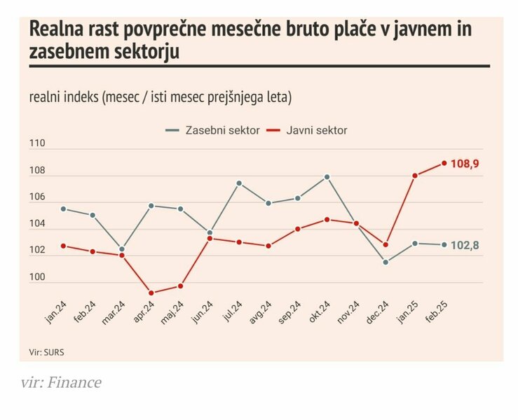 Zakaj je to zaskrbljujoče. Javni sektor ni leta kaj dosti rasel. Samo redna napredovanja. Zdaj je pač skoz, ker so se lani dogovorili. Tak graf je navadno podžiganje. Sem bil zaposlen v javnem zavodu in sem v privatni firmi. Tako da vem, koliko jim je oz. nam je kje šla plača gor.