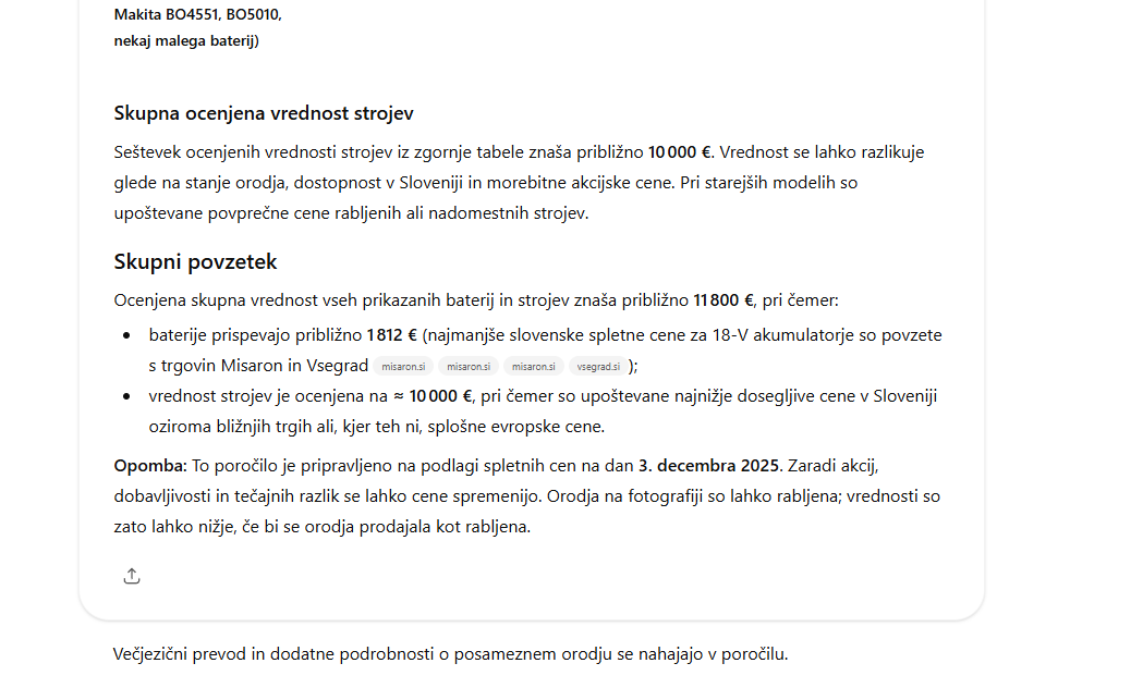 Pa daj za foro še te dve slike...me prav zanima kaj bo AI rekla,k kar nekaj je že orng starega....pa tu ni zraven švasaparata,vrtnih strojev,visootlačnega čistilca,merilnih instrumentov,multimetrov,polnilcev raznih vrst k niso za "orodje"itd... Je pa zraven na sliki en stroj,ki bi moral prispeti jutri ali pojutrišnjem...seveda je spet nekaj "posebnega" in zaenkrat ne izdam kateri je...lahko pa kdo ugiba😄...bom seveda predstavil😉 Danes je pa prišel tudi moj "cigo"-meter😃...bo prišel zelo prav pri postavitvi Atmos zvočnikov,ker ima tudi kotomer itd...res nora stvarca😃👍