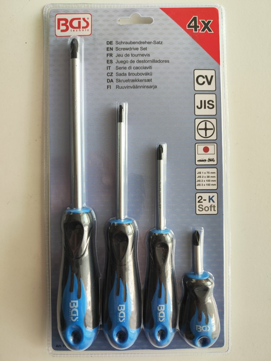 Na prvi pogled nič posebnega...a vseeno so malce "posebni" izvijači...po japonskem industrijskem standardu JIS. Evropski križni t.i.Philips načeloma "pašejo" na JIS vijake (imajo na glavi vijaka znacilno piko)...a ko je vijak zapečen,si želiš,da z Philipson nebi niti poizkušal...3x lahko ugibate kako vem🥺...bi o tem znali kakšni lastniki starejših japonskih motorjev in avtomobilov marsikakšno zgodbico zapeti.🙄 Definitivno...če si natančen Philips ne paše na JISa.🧐 BGS...ok-znamka...9,59€ Amazon