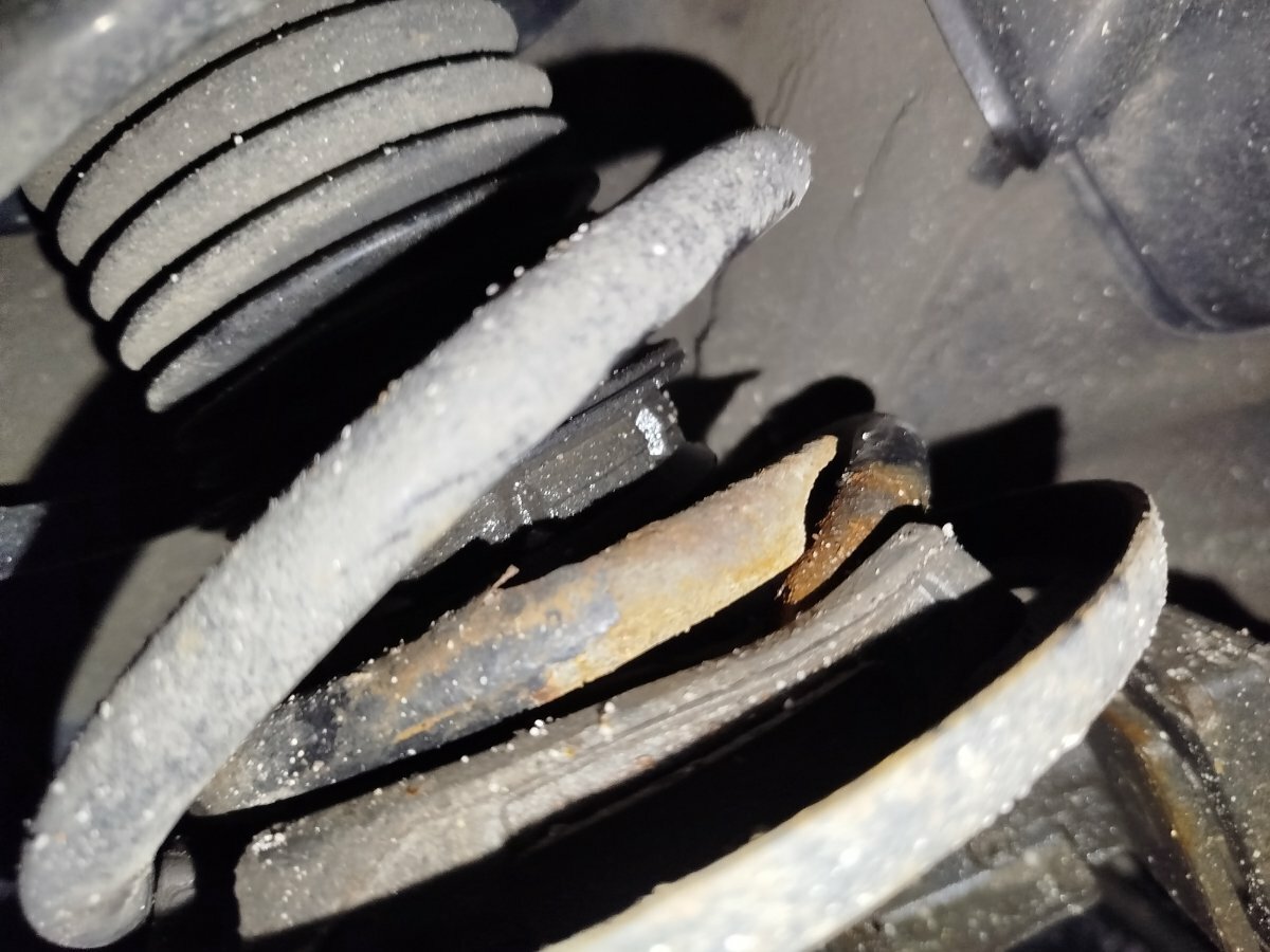 2. Pred 14dni mi je na letniku 2017 počila vzmet ko sem s prvo in 5 km na uro šel čez ležečega policaja. Ker sprva nisem gledal sem se vozil se Ca 600 km🙄 danes pa sem ven pobral kos vzmeti.