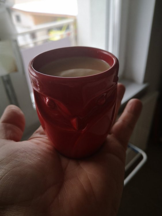 Tudi pri nas je posijalo sonce. 😊Bom na koncu pogledal u zos, če to kaj pomeni in nas mogoče čaka dobro leto.... 😁 Prvič pijem to podarjeno instant barkafe, upam, da bo za kaj...