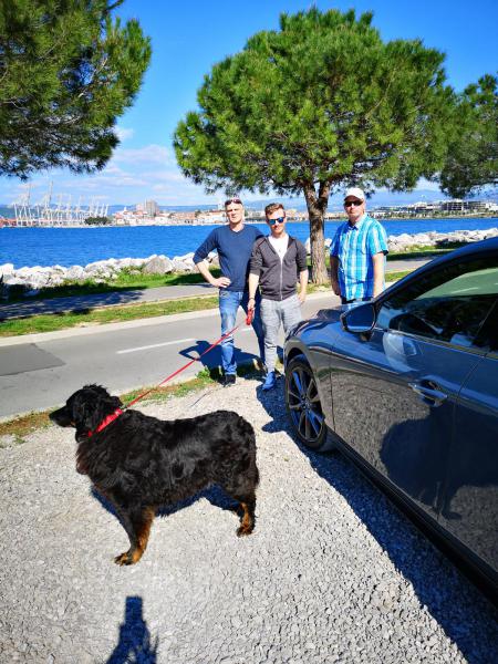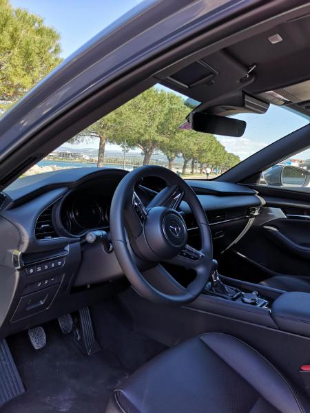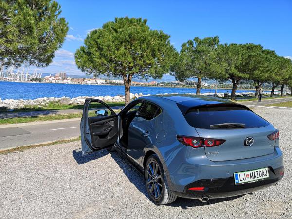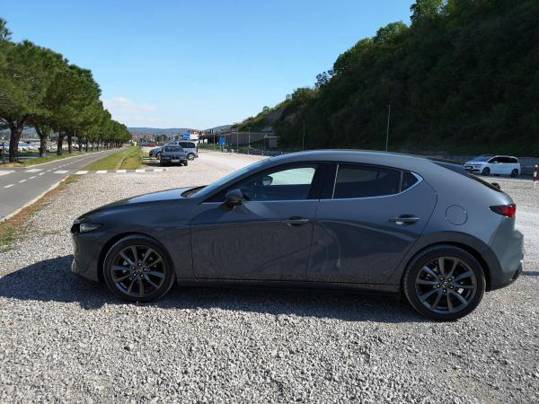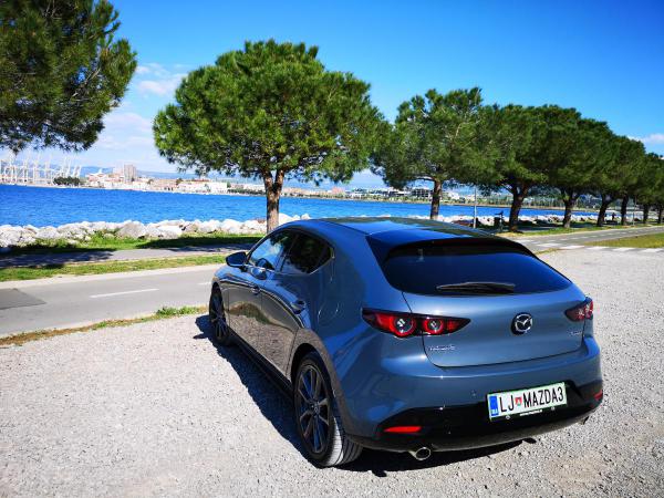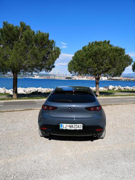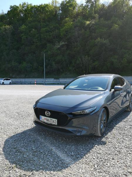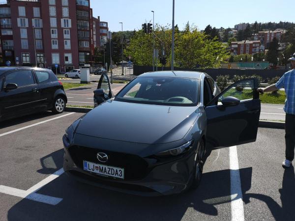 Pozdravljeni mazda?i in mazda?ice, v?eraj smo z gelipterjem pa alexom testirali novo mazdo 3 hatchback g122. Slike in posntke nove 3-ke sem ?e vidu in ?e po slikah/videjih mi je bla vizualno zelo v?e?, tako navzven kot notranjost, ko pa sem v?eraj vidu novo 3-ko ?e v ?ivo mi je bla ?e bolj v?e?, moram priznat, da so jo zelo lepo oblikovali in te?ko bi najdu avto ki bi me vizualno tako pritegnil kot ta 3-ka (to govorim o novej?ih avtih seveda), pa delam v luki koper kjer vozim avte in vidim ve?ino zadnjih modelov novej?ih avtov pa mi noben ni tolko v?e? kot tale 3-ka. No da se preselim na notranjost, voznik pa sovoznik sedita zelo udobno, sprednji sede?i so eni izmed najbolj udobnih kar sem jih probal, lepo te objamejo, ne?no ampak dovolj mo?no da se ne premetava? med ovinki, armaturna plo??a je minimalisti?na in lepo razporejena, se vidi, da je avto zasnovan bolj za voznika, vsi in?trumenti so obrnjeni proti vozniku, sovoznik pa ima lep nemoten pogled na cesto in z izjemo prezra?evalnih re?, katere so usmerjene direkt v sovoznika malo ni?je kot smo mogo?e vajeni v drugih avtih, osebno mi je to zelo v?e?, voznik ima tudi svoje prezra?evalne re?e usmerjene proti njemu, tako da si vsak lahko prilagodi temperaturo zraka, ki piha vanj. Da ?e omenim zadnje sede?e, udobni so, ne tolko kot sprednji sede?i, ampak na zadnjih sede?ih pa ni tolko prostora kot spredaj, zadnja del strehe se kr hitro in strmo spusti dol, zame je blo ve? kot uredu s tem da sem visok okoli 165 cm, marsikdo vi?ji bi imel malo te?ave ampak spet ne tolko, da bi blo ?isto neudobno, Alex je tudi sedel zadaj pa je kr visok in spet ni blo tako neudobno. Drugi problem zadaj je ?rni strop, dobi? zelo utesnjen ob?utek zadaj, zraven dodaj ?e majhna zadnja okna pa je ta ob?utek ?e tolko ve?ji. Poleg tega se da tudi zadaj zelo udobno sedet, dve osebe zadaj nebi imele nobenih te?av, s tremi osebami bi ?e blo malo natrpano, tudi zaradi grbine na sredini. Ko pa pogledamo vo?njo nove 3-ke, tu pa se redkokateri avto pribli?a ob?utku, ki ga dobi? ob vo?nji nove 3-ke, po besedah Gelipterja ji manjka par konji?ev ve? in s tem se bom strinjal, kar sem jo sam vozil se opazi, da ji manjka mo?i, navora, ?uti? da bi ?elela it hitreje ampak ne more. Kar se pa same dinamike vo?nje ti?e je pa avto bomba na kratko povedano, ob?utek na volanu je odli?en, volan ni preve? te?ek ampak tudi preve? lahek ne, pedala super reagirajo na manj?e pritiske, zavore primejo zelo dobro in hitro, ampak jih je treba malo bolj pritisnit ampak ko pa stisne? zavore pa res primejo dobro, avto se tudi odli?no dr?i ceste in zelo stabilna v ovinkih. Ko je Gelipter vozil, ki ima malo te?jo nogo kolko sem opazil je blo tudi na zadnjih sede?ih kr udobno. Zdej ker avto ki smo ga testirali je bil na 18-kah je vo?nja bla malo bolj trda in verjetno igra vlogo tudi vzmetenje pri temu, ampak ni pa bila tako trda da se nebi mogu navadit in vseeno imet prijetno vo?njo, tudi ?ez grbine ni bla neudobna. Glavni adut nove trojke, vsaj meni, je ob?utek v vo?nji, ki je pa res nekaj posebnega, kot sem prej omenil, delam v luki koper kjer vozim avte med 8-12 ur dnevno od mercedesa s klase, do audija Q8, sej ti avti so super da ne boste narobe razumeli, zaslu?ijo si svojo ceno, ampak noben od teh avtov mi ni dal nasme?ka na obrazu kot mi jo je dala mazda v?eraj. Seveda smo naredili tudi nekaj slik v?eraj, ker bi blo ?koda ?e jih nebi Za slike smo vpra?ali eno gospo, ki je ?la mimo ?e nas lahko vse tri slika poleg avta in smo si sposodli sposojenega psa od gospe dokler nas je slikala