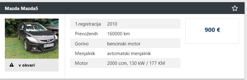 @Slivka, kaj pa kakšen Mazdin neuničljiv bencinar? 😁 Mazda Mazda5 , letnik:2010,900 EUR - prodam :: Avtonet :: www.Avto.net