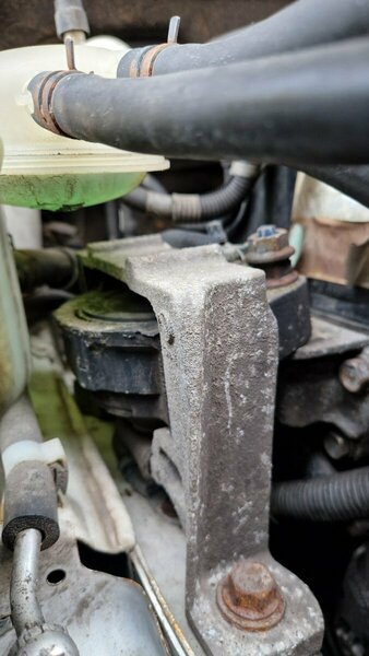 3. Včeraj saniral še eno šalabajzerstvo. Odločil sem se zamenjati še nosilec motorja pri menjalniku. Ko sem odvijal vijak sem veden da nekaj ni ok... Imel sem prav. Več kot polovica navoja na vmesnem ALU nosilcu je bila pobrana, med utori vijaka pa zaprešani opilki. Pištola in gasa bi rekel. V Zagrebu na avtoodpadu Jazbina (preko 100 Mazd ima, 5tka malo manj popularna) sem dobil ALU nosilec (v BTCju je cena 205 EUR z DDV) in še nekaj drugih delov, ki so jih mojstri izgubili ob servisiranju avtomobila (dejansko je bila servisirana na uradnih vse do 200k km, zaskrbljujoče bi rekel). Vijak pa sem spedenal, da je šel lepo v novi nosilec. Precej noro.