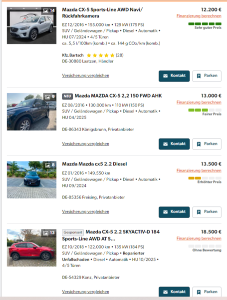 sem na brzino gledal pa tega nisem opazil, sem šel sedaj pa od najcenejšega gor, ta res izstopa potem sta še trije pod 14k v celi nemciji... nato pa vse v rangu slovenskih cen... Se zavedam, da v kolikor želim bi se želel znebiti avta (mazde) bi moral biti najcenejši na avto.net, za1x bi jo rad še prodal, ni potrebe po tem, da se je znebim
