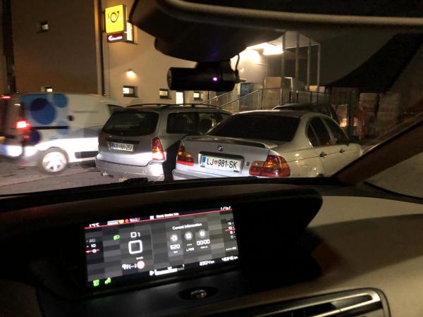 Sredi ceste....pa da bi bila vsaj druga znamka....se dobro da je desni parkplac frej da se je dali mimo