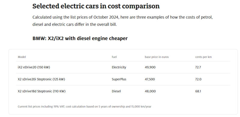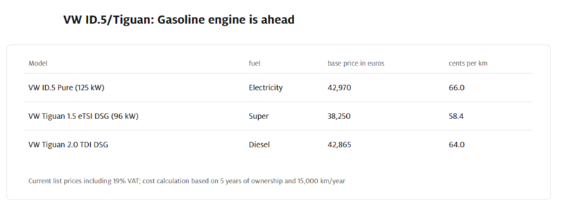 ADAC je naredil nekaj nedopustnega, naredil je 5 letno kalkulacija z vsem vključenim, cena avta, servisi, benz / strom, in ugotovil da niti v enem primeru ni 100% elektrika prednost....ker enostavno so energenti sedaj na popolnoma enakem nivoju, cena avta pa prevlada, tudi če je treba servisirat ice. in to je bilo lani ko je bila elektrika še cenejša https://assets.adac.de/Autodatenbank/Autokosten/E-AutosVergleich.pdf nullnullnull