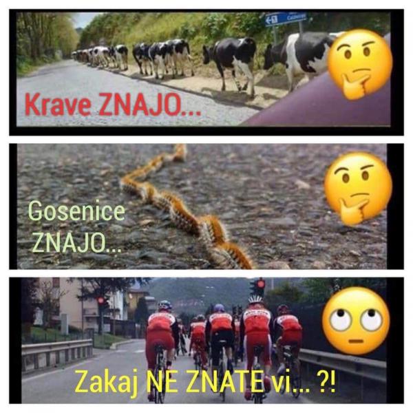 Pa berem to kar sem napisal... Zakonodaja v Sloveniji vo?njo v?tric sicer dovoljuje, a le profesionalnim kolesarjem z licenco Kolesarske zveze Slovenije ali druge mednarodne organizacije, pri ?emer pa morata kolesarje ? v skupini morajo biti vsaj ?tirje ? v temu primeru obvezno spremljati spremljevalni vozili, po eno na vsakem koncu, kateri morata biti opremljeni z ustrezno rumeno utripajo?o lu?jo. Prepoved vo?nje v paru velja tudi za kolesarje v Italiji, medtem ko je tako kolesarjenje pri na?ih severnih sosedih dovoljeno. Ima? dva pogleda, v?tric kolona je kraj?a a ?ir?a - potrebno je prehitevanje v slogu avta. Vo?nja en za drugim omogo?a obvoz. In spet smo pri cestnem bontonu tako kolesarjev kot drugih voznikov (ne glede na to kaj narekuje zakon) ?e gre kdo nasproti prehitevati pa je kolesar sam na desnem ali dva v ?tric ni vreden izpita....