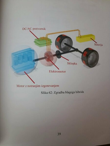 Za lazje razumevanje slika z moje knjige o alternativnih pogonih. Na sliki si predstvljaj tam ko pise sklopka da je menjalnik in zdaj se vidi da lahko gred v menjalnik (na sliki sklopka) poganja motor ali elektromotor. -