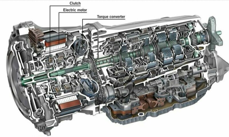 Za menjalnikom nima funkcije, pol je najbolje elektromotor v koli, nimas toliko izgub. Saj vrtljaje elektromotrja lahko korigiras s potenciometrom, torej lahko imas konstantne vrtljaje, menjalnik pa deluje enako, saj mu je vseeno kaj poganja glavno gred, informacije ki jih potrebuje kot so vrtlnaji koles, temperatura olja, naklon, pozicija pedala pa tako dobi s senzorjev. Evo slika za lazje razumevanje. Ima enako wandler plus se elektromotor, in ko deluje ice poganja wndler, ko pa elektromotor pa direkt poganja vstopno gred. -