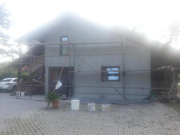 Pozdravljeni, imam eno veliko pro?njo, ker jaz to ne znam. Mojstri nam delajo fasado in jutri (ponedeljek, najkasneje torek) bi se naj ?e barvala. Barva bo tak?na ne?na mareli?na, svetujejo pa nam tudi kak temnej?i odtenek kot neka po?ivitev. Tudi moja najdra?ja pravi da bi ona tam zgoraj desno nad spodnjim oknom naredila nekaj da razbije tisto praznino (mogo?e kak?ne dve, tri temnej?e ?rte). Ali je kak tak mojster da zna to storiti v kak?nem programu da vsaj malo dobimo ob?utek kako bi to zgledalo. Vem da je malo ?udno ker se na sliki vidi tudi oder, ampak karkoli mi kdo pomaga je bolje kot ni?. Torej, ?e kdo to zna bi ga res lepo prosil za pomo?. ?e vnaprej hvala P.S. se opravi?ujem za slab?o kvaliteto slik, vendar sem slikal proti soncu ker druga?e nisem mogel