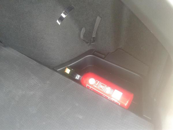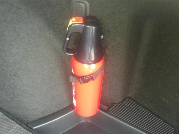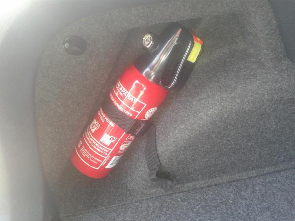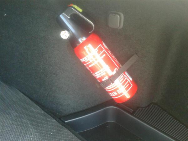 Danes kupil gasilni aparat (pravzaprav dva) in montiral v Mazdo. Vse skupaj zgleda dokaj ?alostno, tisti trak za namestitev aparat pri Mazdi je o?itno bolj zaradi lep?ega. O kak?nem ?vrstem vpetju ni govora. Poleg tega je spodaj naslonjeno na plastiko, tako da (brez ukrepov) pri?akujem kak?en nepotreben ropot. Na aparat nameravam nalepiti samolepilnega je?ka, podobno kot ima prva pomo? itd. Upam, da bo pomagalo. Isto?asno je gasilni aparat dobil tudi Polo. Tam sta pritrditev in polo?aj zgledna.